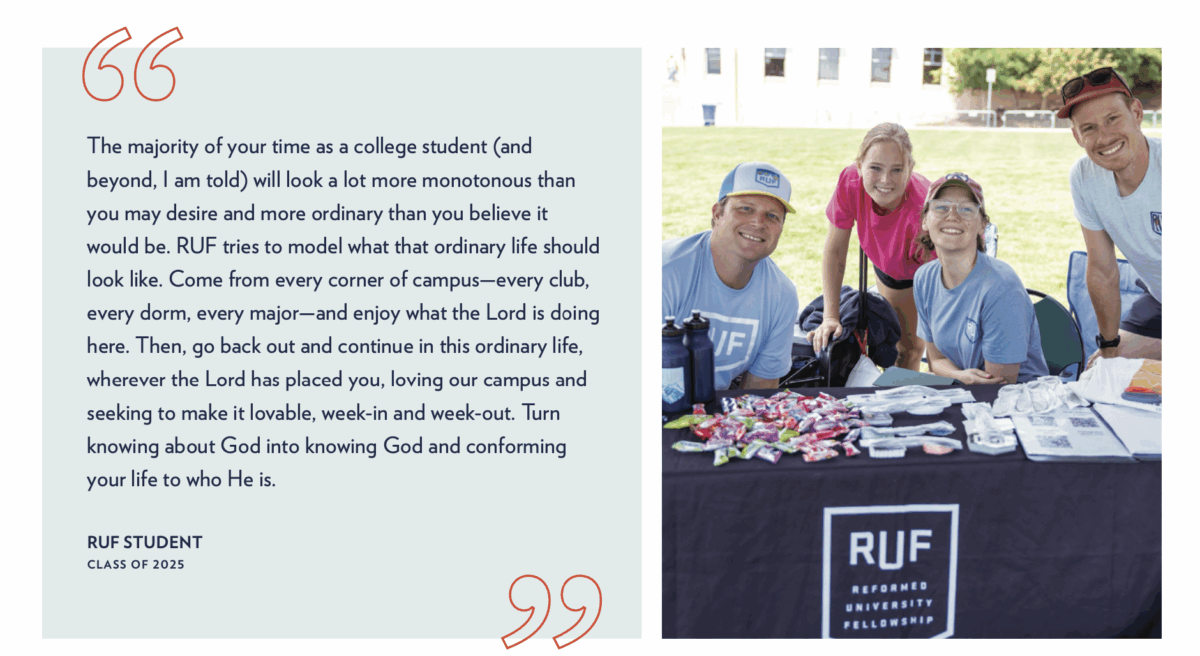 RUF is blessed to have clarity of mission: reach students for Christ and equip them to serve. Time and again, we rejoice in stories of students coming to faith, discovering that grace really does change everything, and becoming part of transformation in the lives of others. I am honored to share details about how the Lord is using RUF in mighty ways throughout the pages of this report (linked in full below), and I hope it is an encouragement to you.